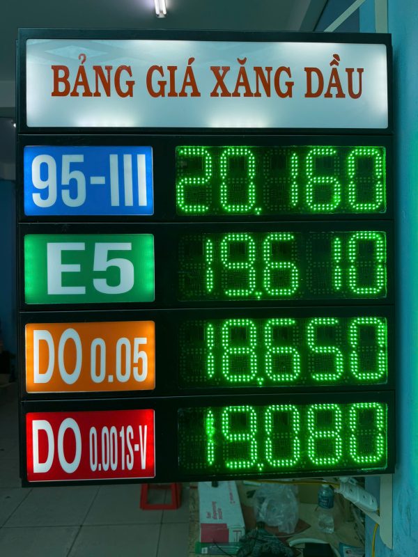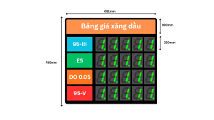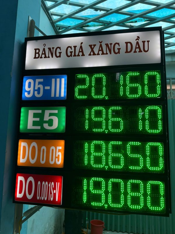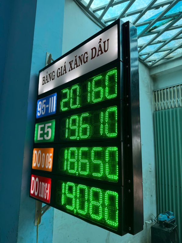 Bảng giá xăng dầu điện tử tự động là thiết bị hiển thị LED chuyên dụng, giúp các cửa hàng xăng dầu dễ dàng cập nhật giá bán lẻ nhanh chóng, chính xác và chuyên nghiệp. Với thiết kế hiện đại, độ sáng cao và khả năng chống chịu thời tiết, bảng giá mang lại sự minh bạch, tăng uy tín và nâng cao trải nghiệm khách hàng.